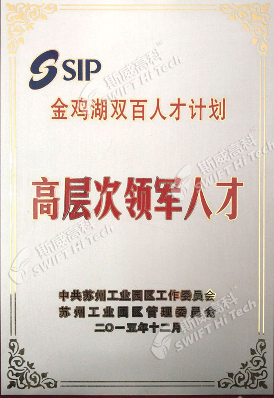 金雞湖雙百人才計劃 科技領(lǐng)軍人才 證書